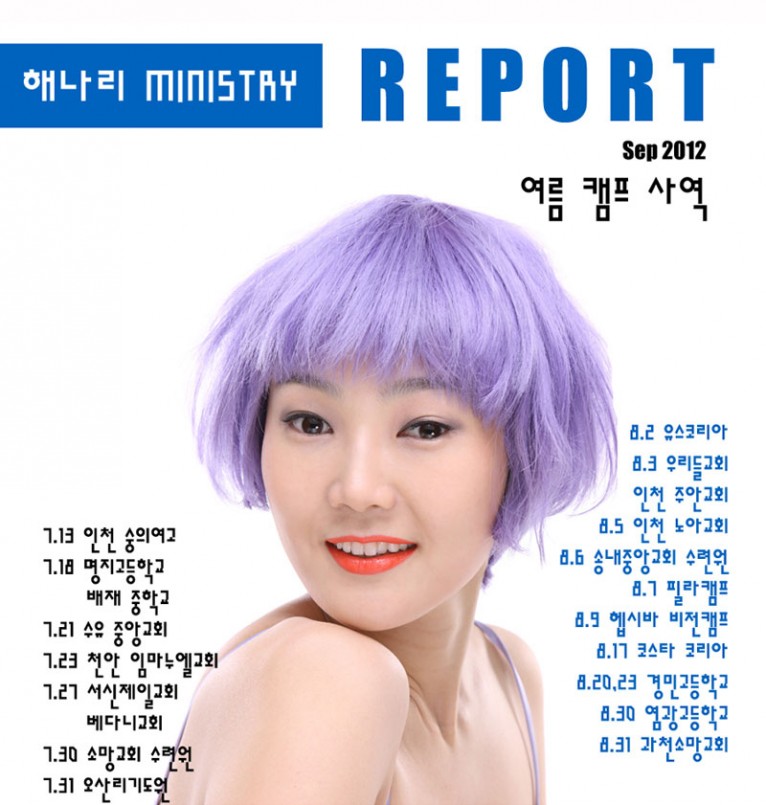 학교폭력 예방을 위한 콘서트 - 회복음악페스티벌이라는 타이틀 아래 탤런트 이영하, 개그맨 김종석부터 가수 박완규, 이성욱, 아이돌 그룹 퍼스트, CCM가수 보라 등 많은 연예인들과 함께한 학교폭력 방지 캠페인 콘서트, 학원 복음화를 위한 기독교 학교들의 신앙 부흥회 등 다양했던 해나리의 여름 사역소개
