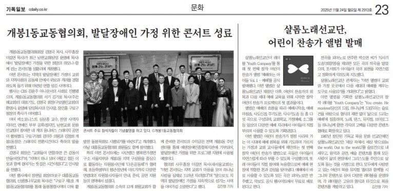 [기사] 샬롬노래선교단, 어린이 찬송가 앨범 발매(기독일보)