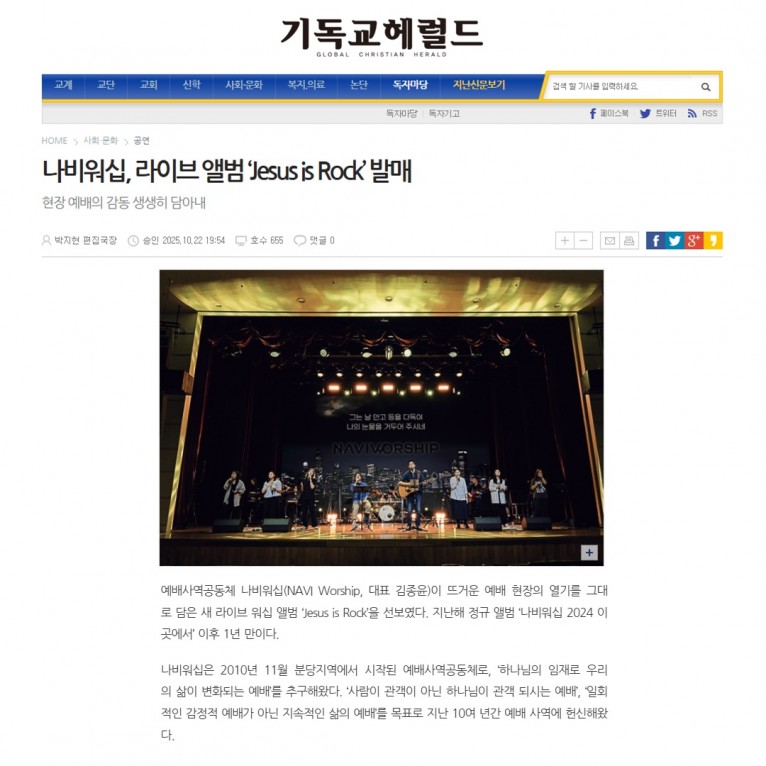 뮤직타임 [기사] 나비워십, 라이브 앨범 ‘Jesus is Rock’ 발매(기독교헤럴드)