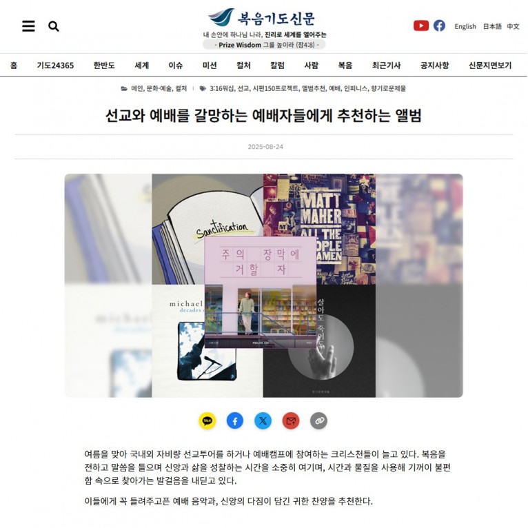 뮤직타임 [기획기사] 선교와 예배를 갈망하는 예배자들에게 추천하는 앨범(복음기도신문)