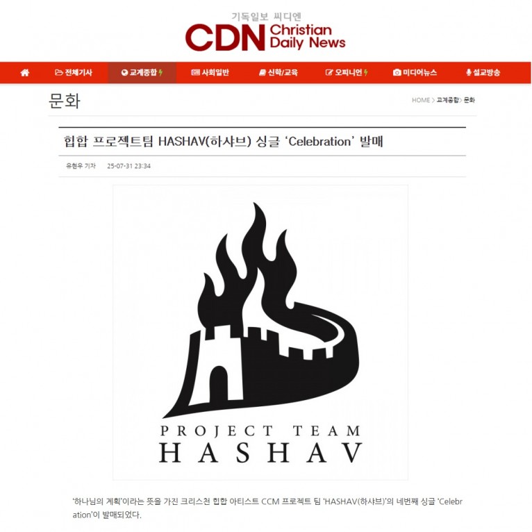 [기사] 힙합 프로젝트팀 HASHAV(하샤브) 싱글 ‘Celebration’ 발매(기독일보 씨디엔)