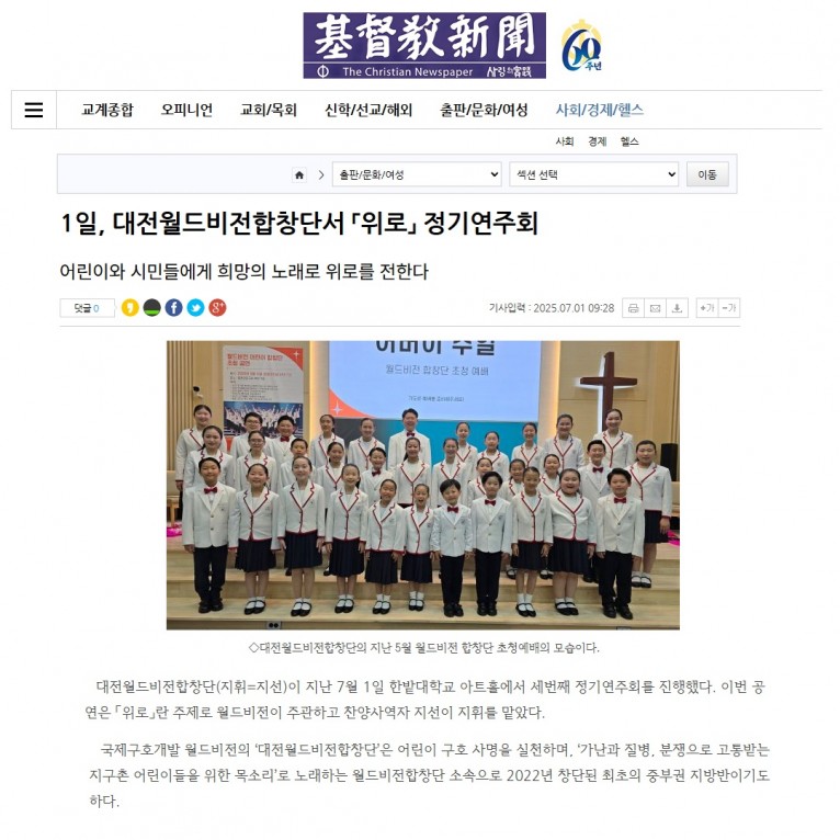 [기사] 1일, 대전월드비전합창단서 「위로」 정기연주회(기독교신문)