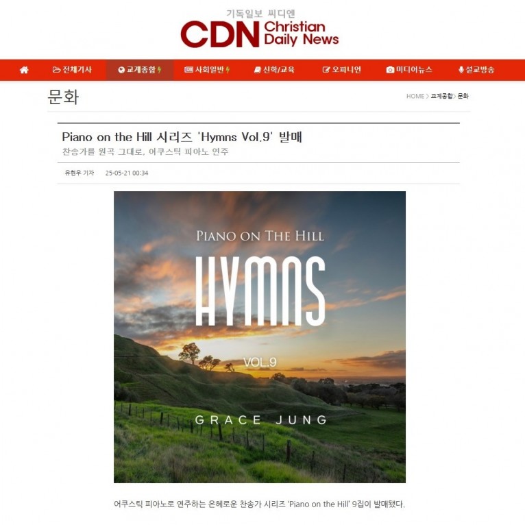 [기사] Piano on the Hill 시리즈 'Hymns Vol.9' 발매(기독일보 씨디엔)