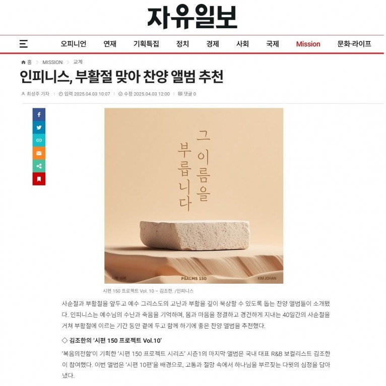 뮤직타임 [기획기사] 부활절 맞아 찬양 앨범 추천(자유일보)