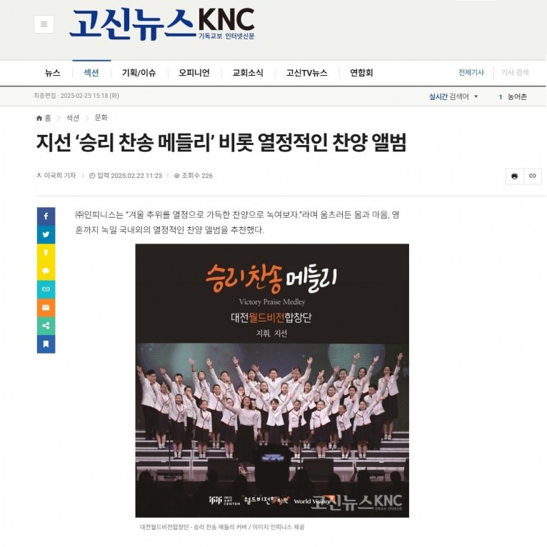 뮤직타임 [기획기사] 지선 ‘승리 찬송 메들리’ 비롯 열정적인 찬양 앨범(고신뉴스 KNC)