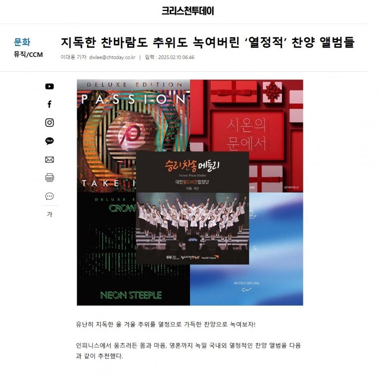 뮤직타임 [기획기사] 지독한 찬바람도, 추위도 녹여버린 ‘열정적’ 찬양 앨범들(크리스천투데이)