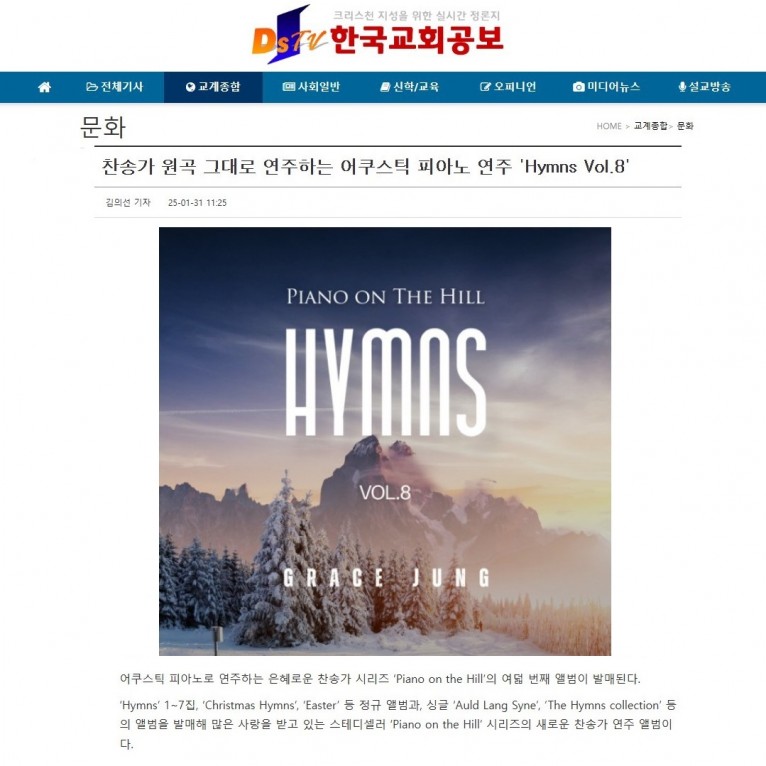 뮤직타임 [기사] 찬송가 원곡 그대로 연주하는 어쿠스틱 피아노 연주 'Hymns Vol.8'(한국교회공보)