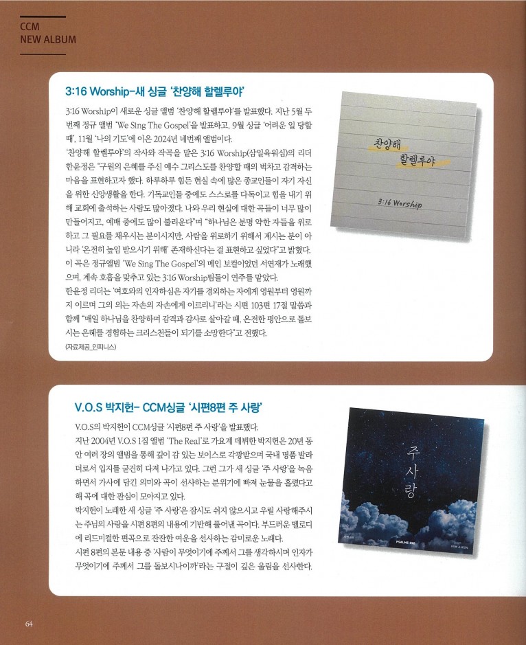 뮤직타임 [잡지] New Album_ 3:16 Worship - 찬양해 할렐루야 등 2편(월간 Church Media 2024.12월호…