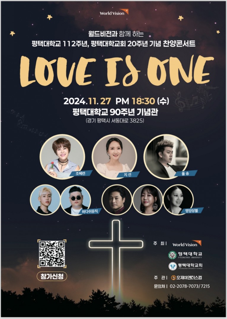 지선이 홍보대사로 있는 월드비전과 평택대학교가 주최하는 ‘LOVE IS ONE 찬양콘서트’가 11월 27일 저녁 6시 30분 평택대학교 90주년 기념관에서 열린다.