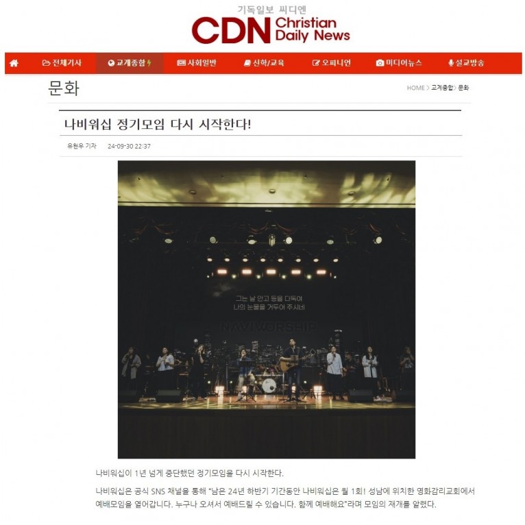 [기사] 나비워십 정기모임 다시 시작한다!(기독일보 씨디엔)