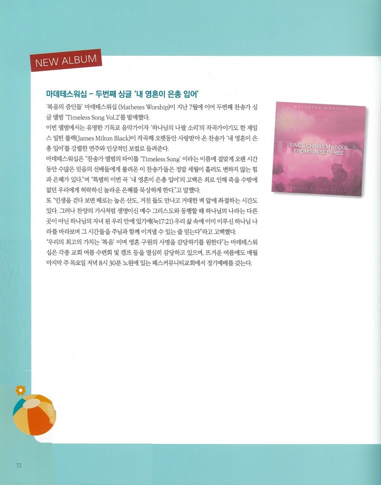 [잡지] New Album_ 마데테스워십 (Mathetes Worship) - Timeless Song Vol.2 (싱글) 등 2편(월간 Church Media 2024.8월호)