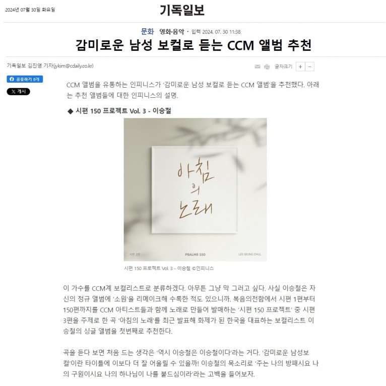 [기획기사] 감미로운 남성 보컬로 듣는 CCM 앨범 추천(기독일보)