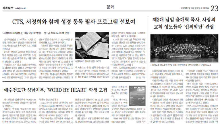 뮤직타임 [기사] 예수전도단 성남지부, ‘WORD BY HEART’ 학생 모집(기독일보)