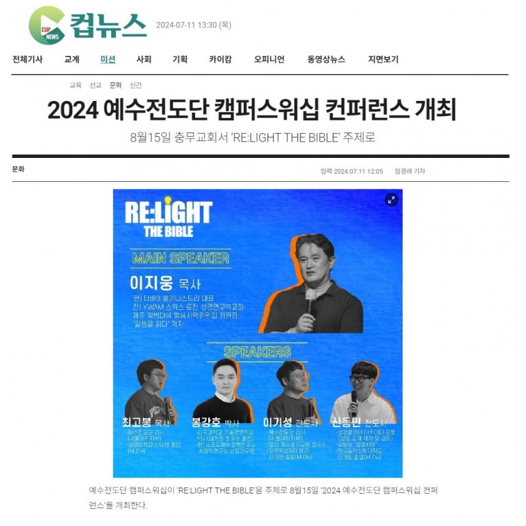 뮤직타임 [기사] 2024 예수전도단 캠퍼스워십 컨퍼런스 개최(크리스챤연합신문)