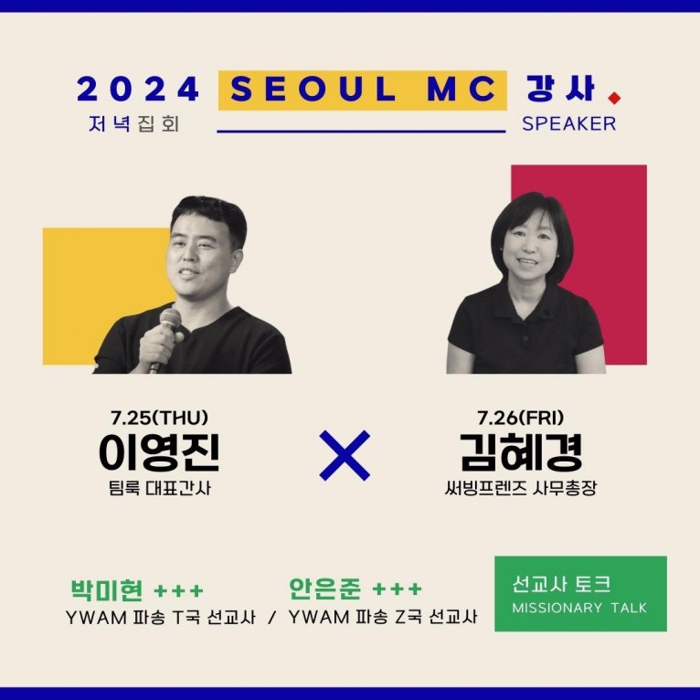 7월 25, 26일 양일간 서교동 교회에서 MISSION CONFERENCE 2024(이하 MC 2024) 대회가 열린다. 서울에서 하나님을 예배하고 선교에 대한 부르심과 열정이 일어나는 시간이 되기를 기도하며 준비하고 있다.