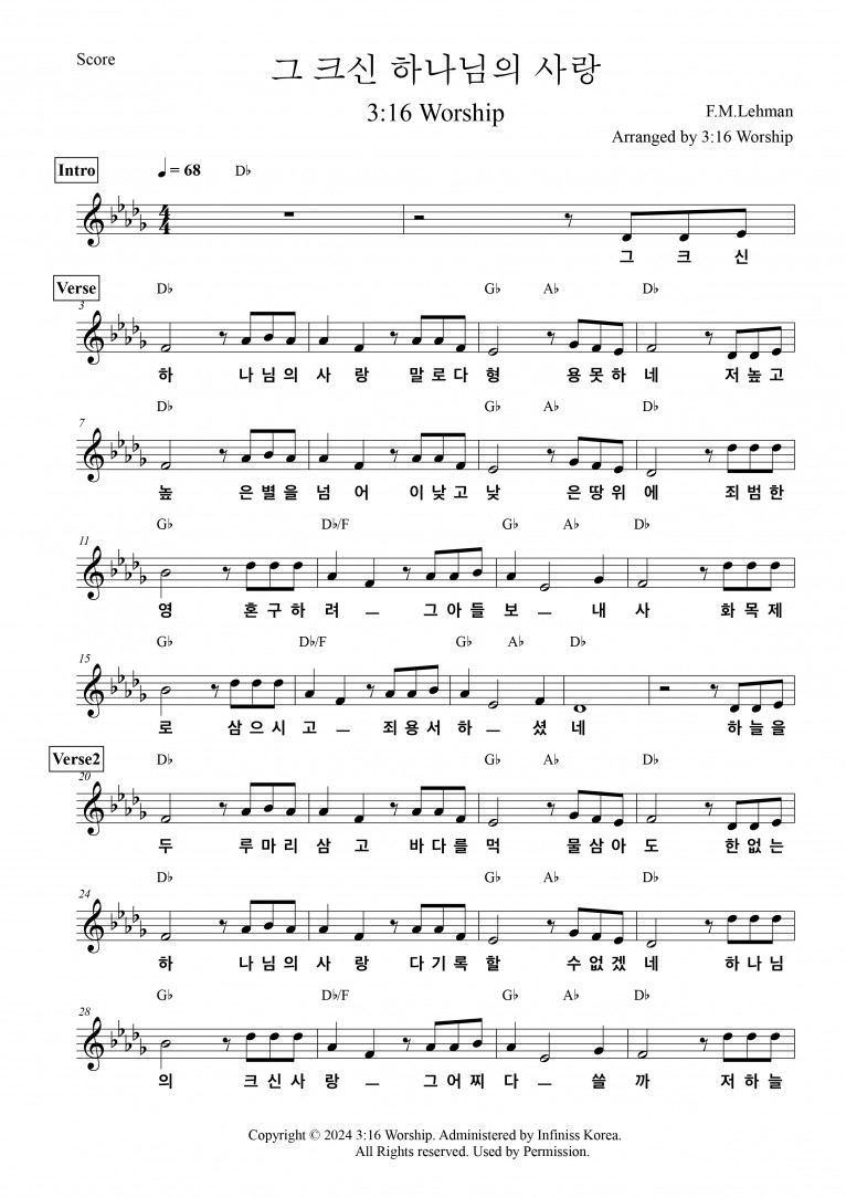 [악보 & MV] 그 크신 하나님의 사랑 - 3:16 Worship