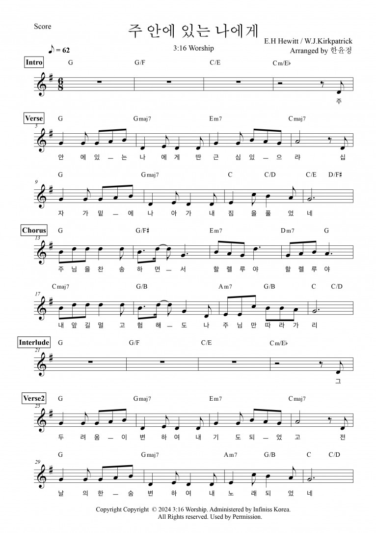 [악보 & MV] 주 안에 있는 나에게 - 3:16 Worship