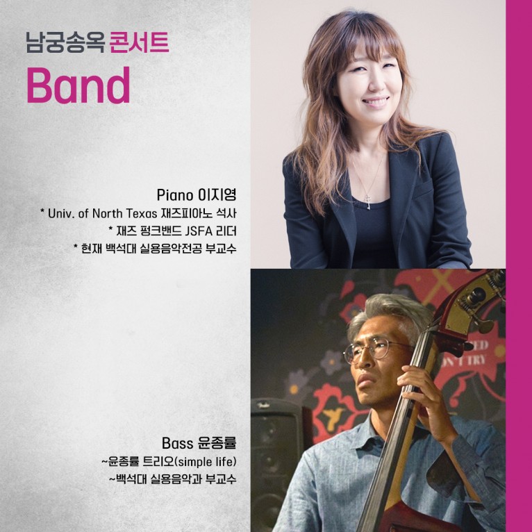 콘서트를 함께 만들어가는 연주자로 드럼 오종대(동아예술대 실용음악학부교수), 콘트라베이스 윤종률(백석대 실용음악과 부교수), 피아노 이지영(백석대 실용음악과 부교수), 기타 김성수(백석예대 실용음악학부 부교수)와 무대와 콘서트 시스템을 맡아 공연을 더 풍성하게 해 줄 나누웍스(나누뮤직), 그리고 제이드409, 인피니스, 소리지오, 광염교회, 쉘위워십 등의 응원을 힘입어 그간 발표했던 남궁송옥의 곡들을 새롭게 선 보일 예정이다.