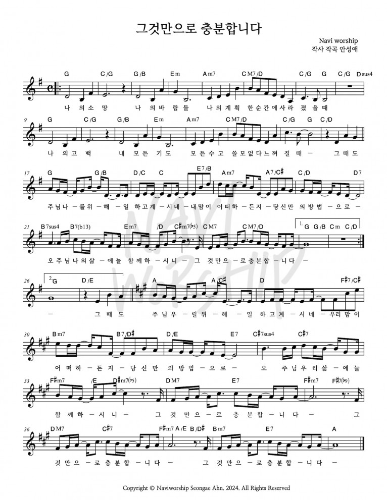 뮤직타임 [악보] 그것만으로 충분합니다 - 나비워십