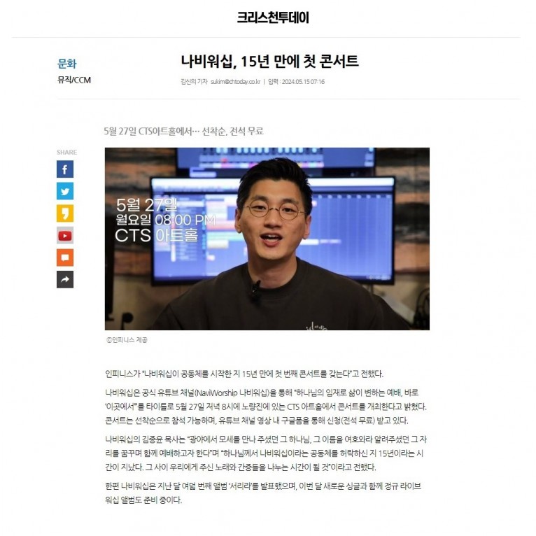 뮤직타임 [기사] 나비워십, 15년 만에 첫 콘서트(크리스천투데이)