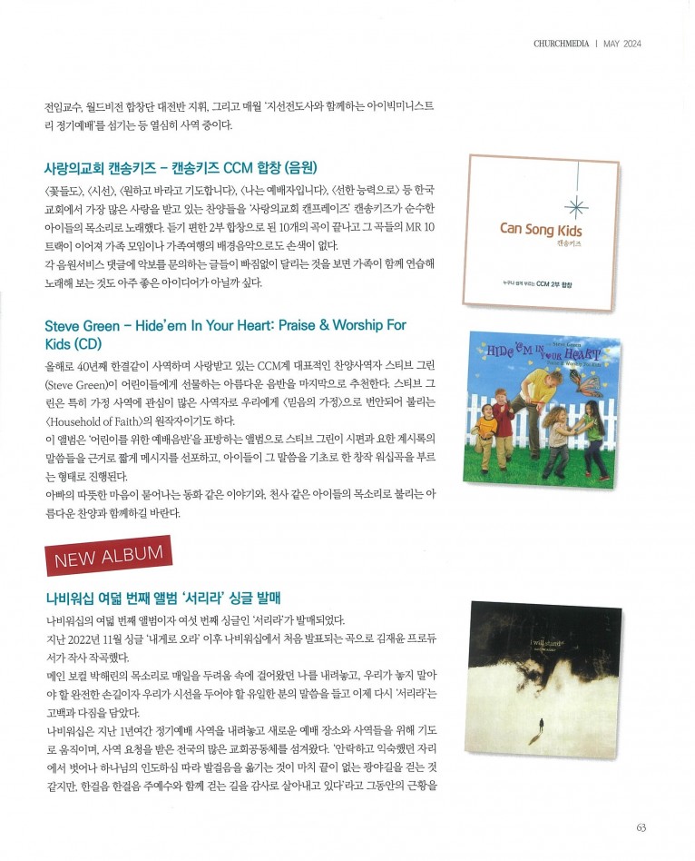 뮤직타임 [잡지] 아이와 함께 듣기 좋은 앨범 추천(월간 Church Media 2024.5월호)