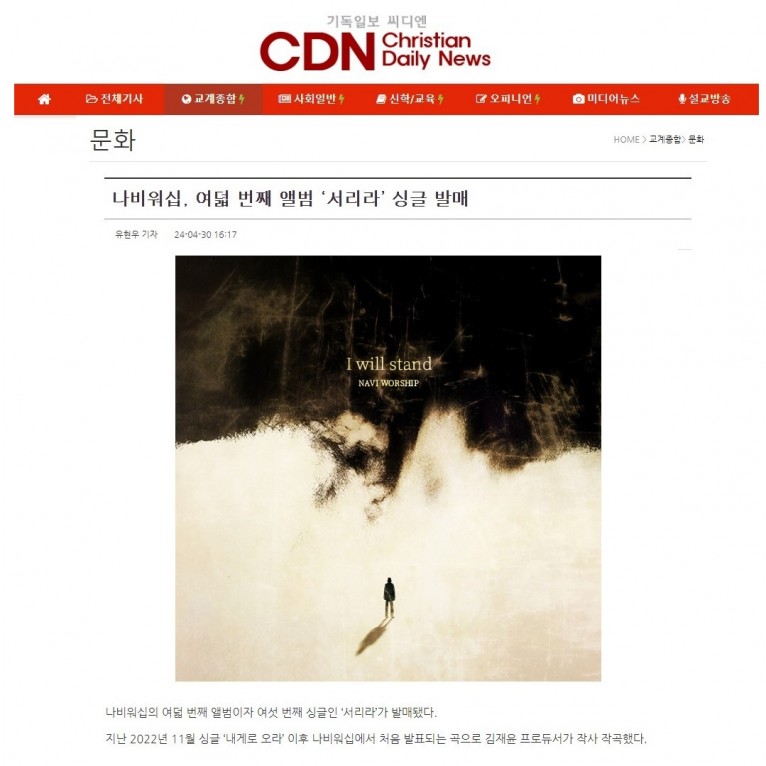 [기사] 나비워십, 여덟 번째 앨범 ‘서리라’ 싱글 발매(기독일보 씨디엔)