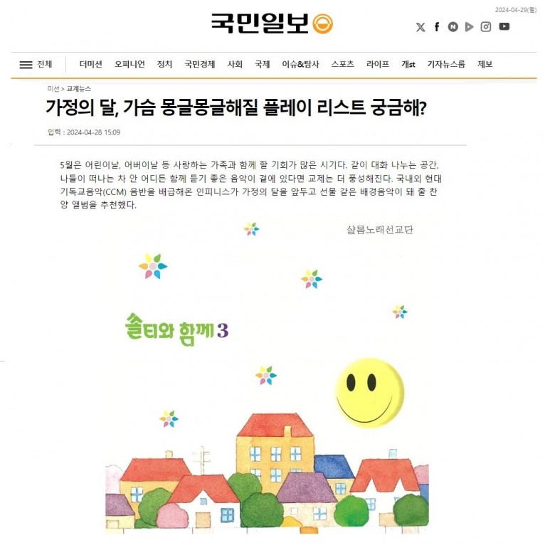[기획기사] 가정의 달, 가슴 몽글몽글해질 플레이 리스트 궁금해?(국민일보)