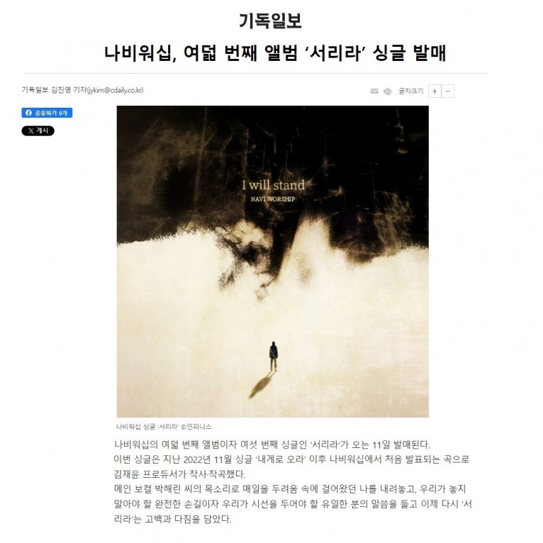 [기사] 나비워십, 여덟 번째 앨범 ‘서리라’ 싱글 발매(기독일보)