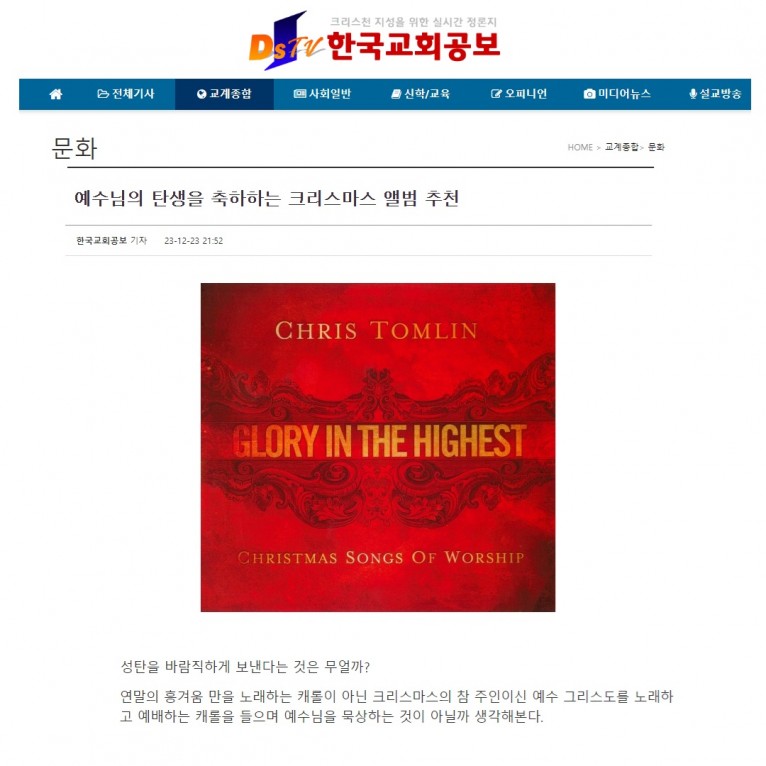 뮤직타임 [기획기사] 예수님의 탄생을 축하하는 크리스마스 앨범 추천(한국교회공보)