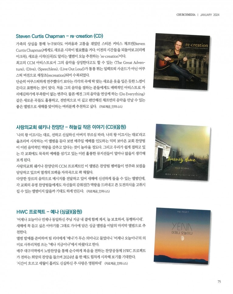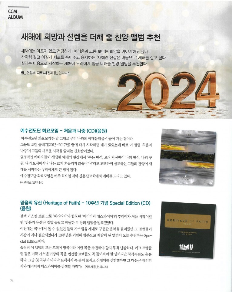 [잡지] 새해에 희망과 설렘을 더해 줄 찬양 앨범 추천(월간 Church Media 2024.1월호)