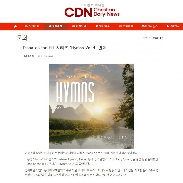 뮤직타임 [기사] Piano on the Hill 시리즈 'Hymns Vol.4' 발매(기독일보 씨디엔)