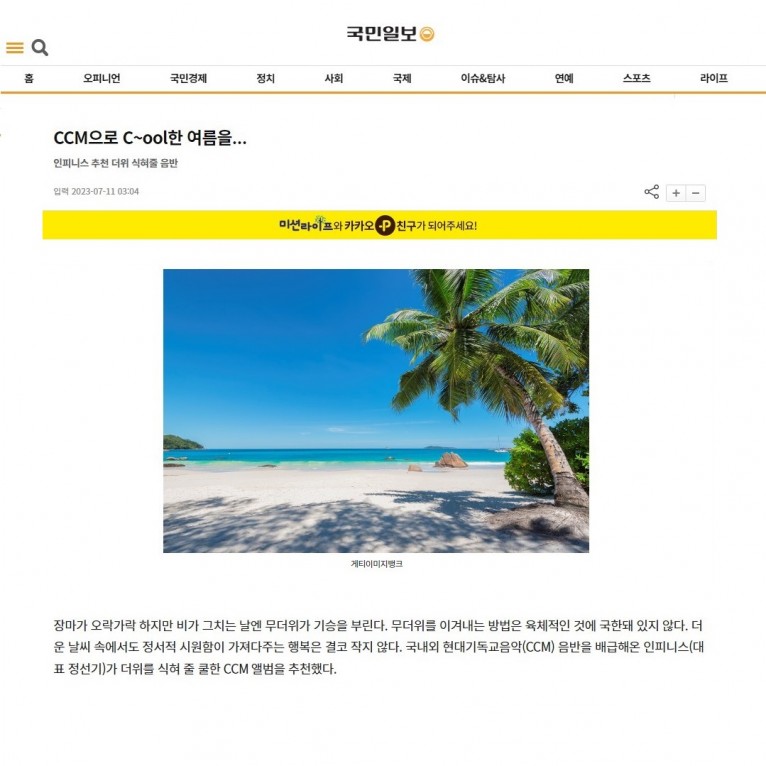 뮤직타임 [기사] CCM으로 C~ool한 여름을…(국민일보)