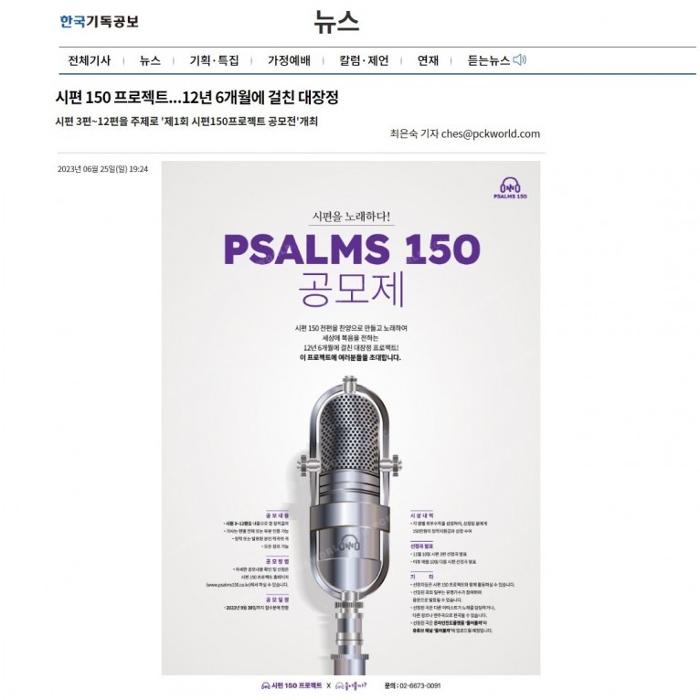 [기사] 시편 150 프로젝트...12년 6개월에 걸친 대장정(한국기독공보)