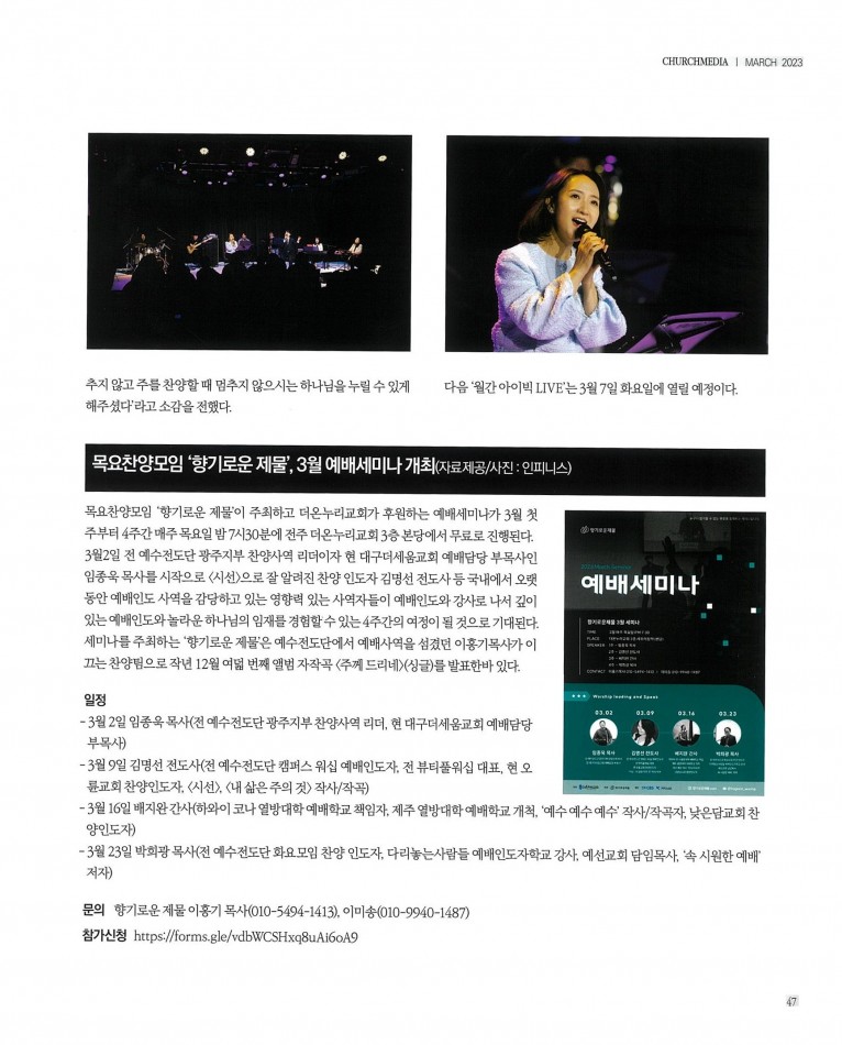뮤직타임 [잡지] 월간 처치미디어 2023.3월 기획기사 (CCM NEWS)