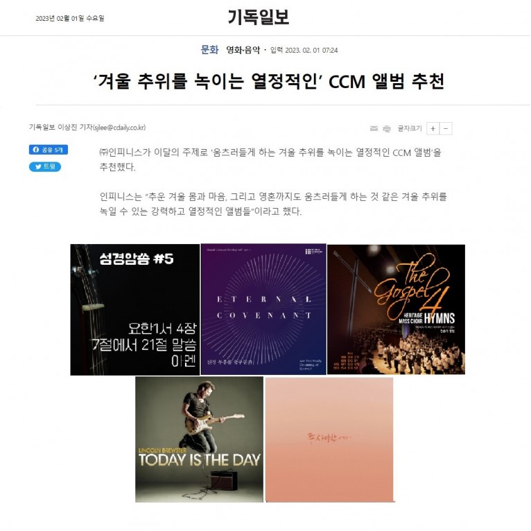 [기사] ‘겨울 추위를 녹이는 열정적인’ CCM 앨범 추천
