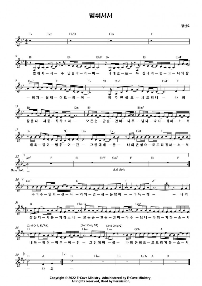 뮤직타임 [악보] 멈춰서서 (Feat. 강세원) - E-Cove Ministry (이커브미니스트리)