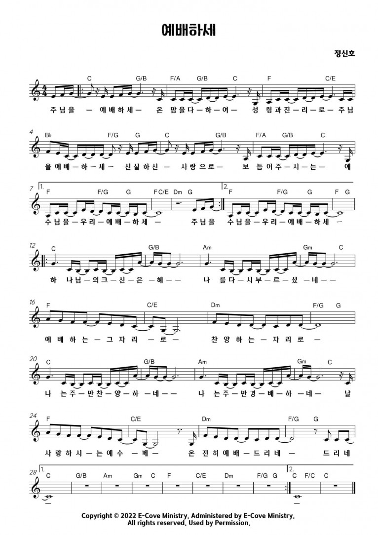 [악보] 예배하세 - E-Cove Ministry (이커브미니스트리)