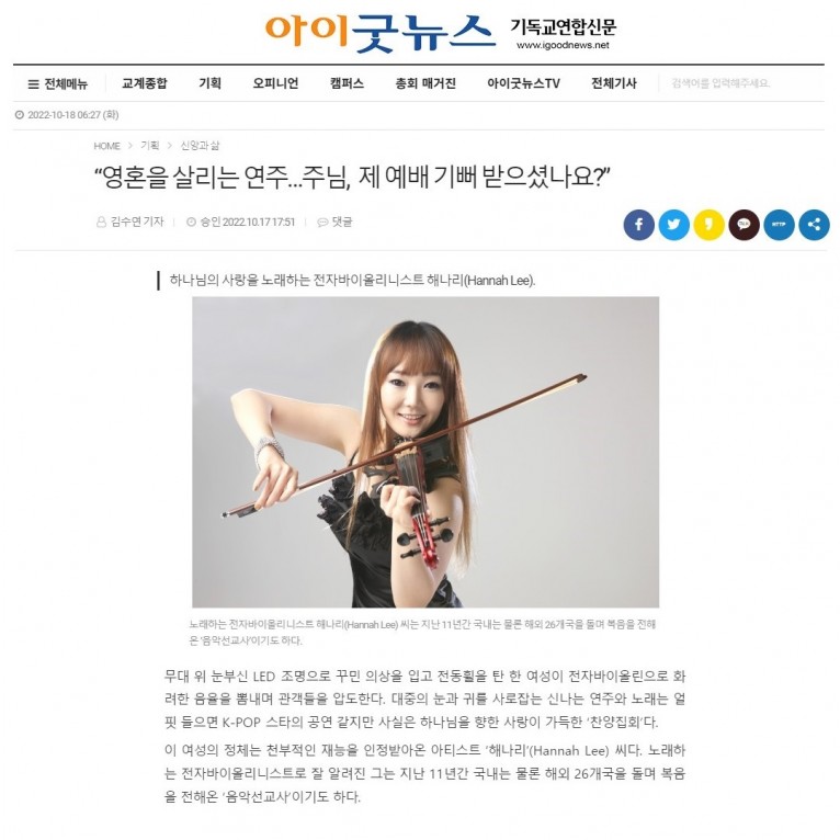 뮤직타임 [기사] “영혼을 살리는 연주…주님, 제 예배 기뻐 받으셨나요?”