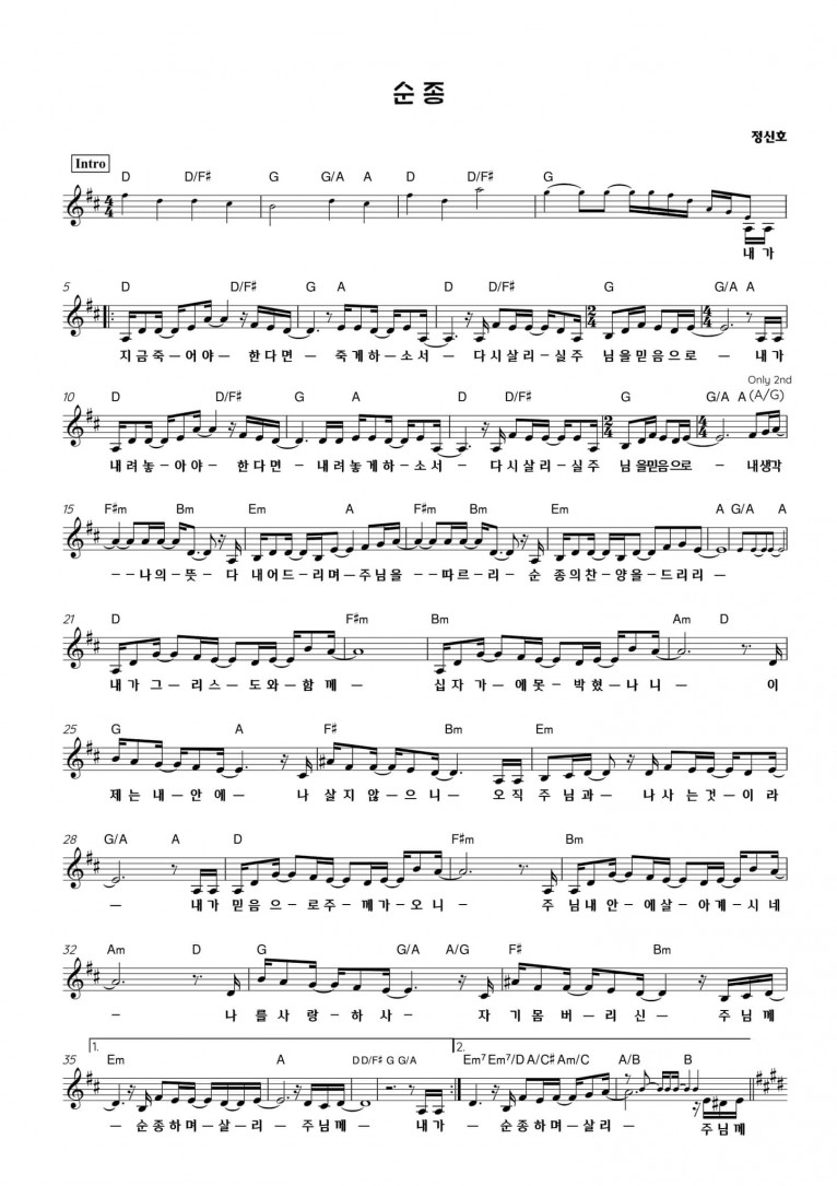 [악보] 순종 - E-Cove Ministry (이커브미니스트리) (진정 부흥을 꿈꾸는가)