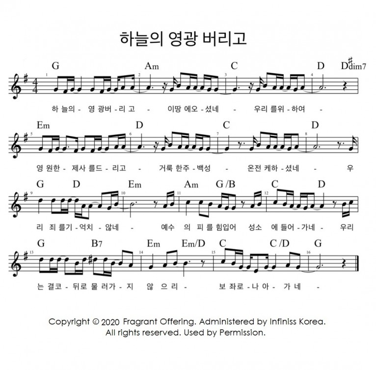 뮤직타임 [악보] 하늘의 영광 버리고 - 향기로운 제물 (향기로운 제물 1st)