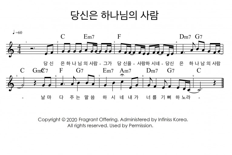 뮤직타임 [악보] 당신은 하나님의 사람 - 향기로운 제물 (향기로운 제물 1st)