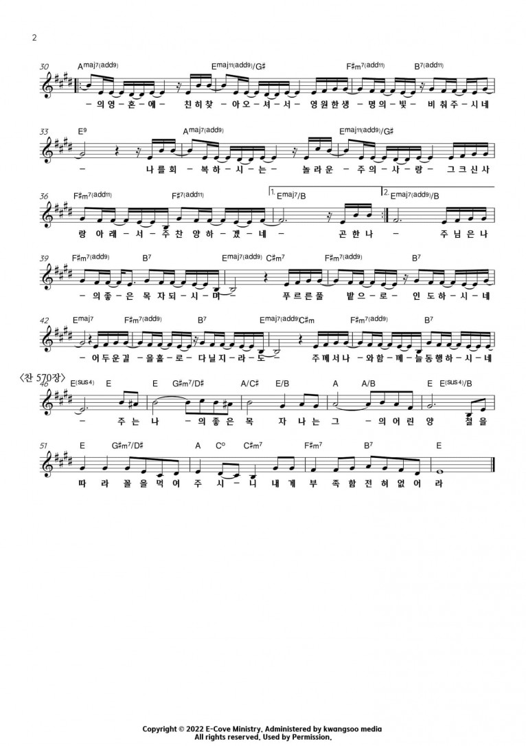 뮤직타임 [악보] 주님은 나의 좋은 목자 되시며 - E-Cove Ministry (이커브미니스트리) (진정 부흥을 꿈꾸는가)