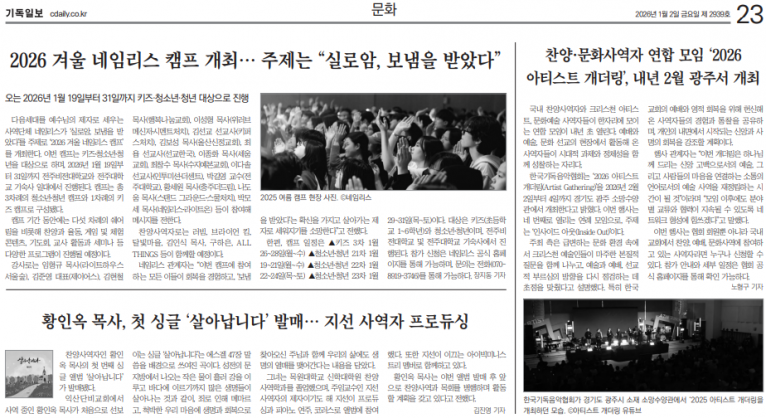 [기사] 황인옥 목사, 첫 싱글 ‘살아납니다’ 발매… 지선 사역자 프로듀싱(기독일보)