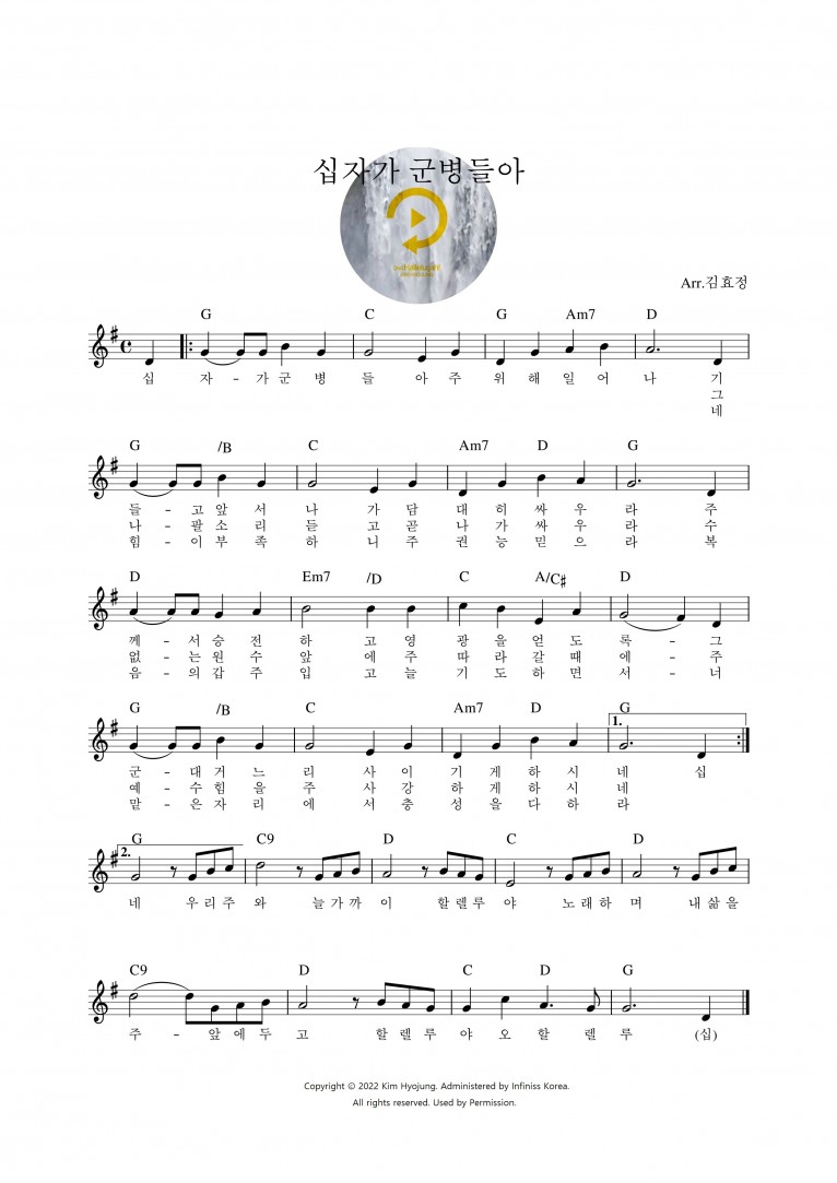 뮤직타임 [악보] 십자가 군병들아 - 김효정 (2nd Hallelu:jah!)
