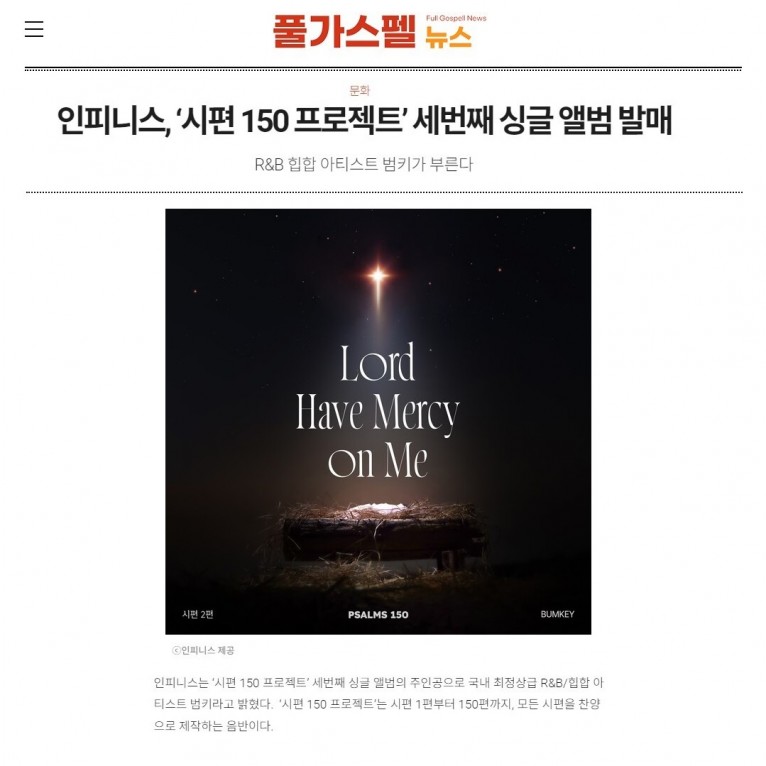 뮤직타임 [기사] ‘시편 150 프로젝트’ 세번째 싱글 앨범 발매(풀가스펠뉴스)