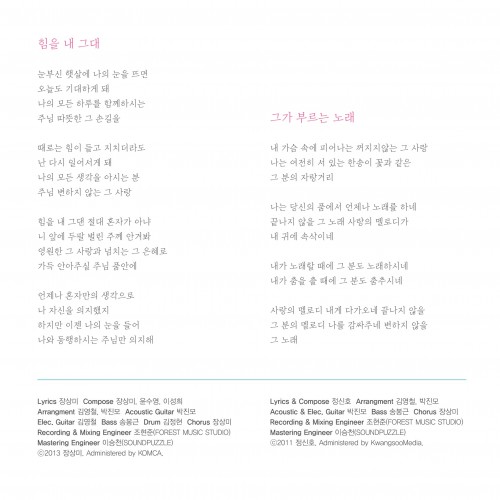 01 힘을 내 그대 _03:56 작사 장상미 작곡 장상미, 윤수영, 이성희 편곡 김영철, 박진모